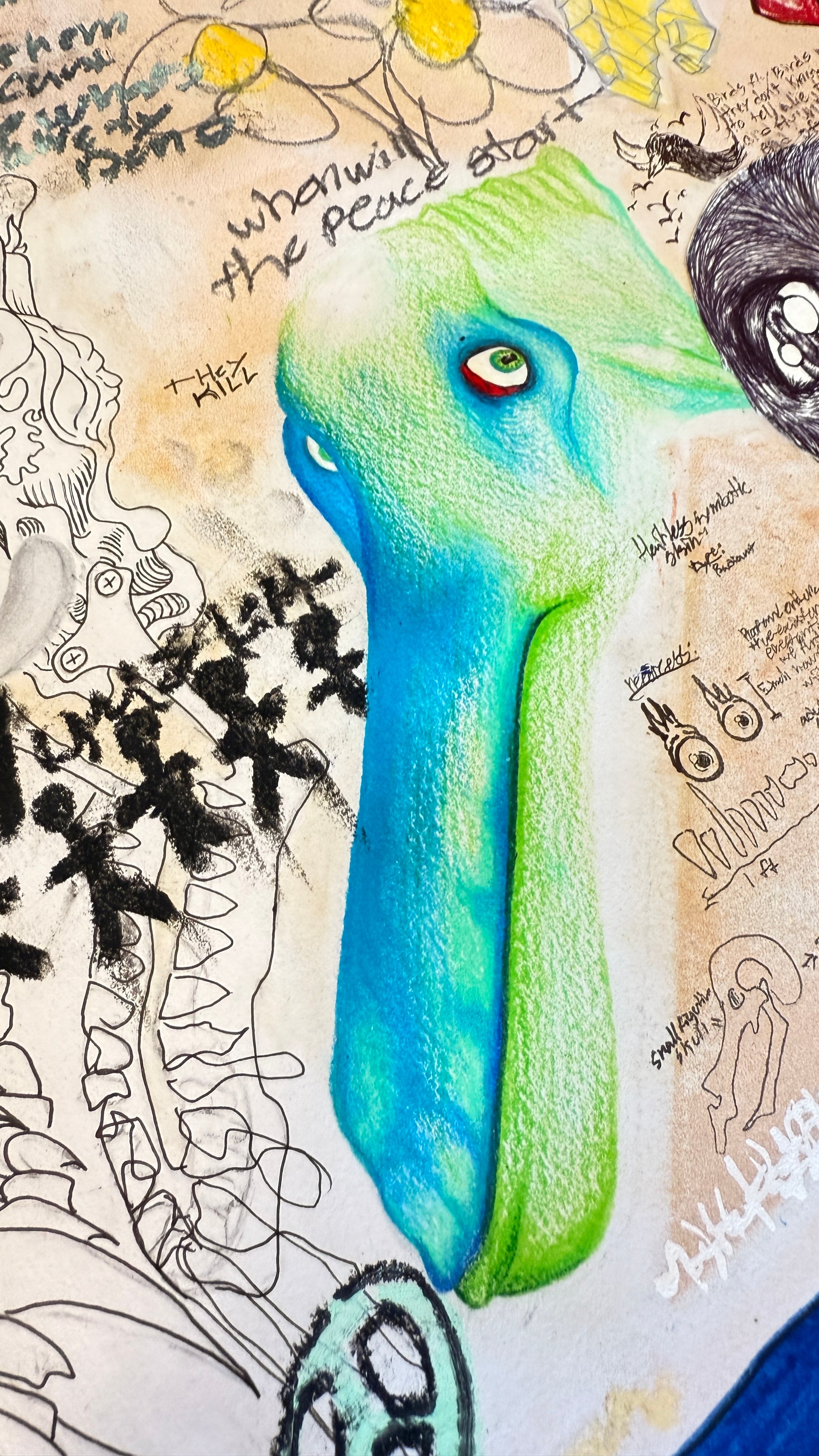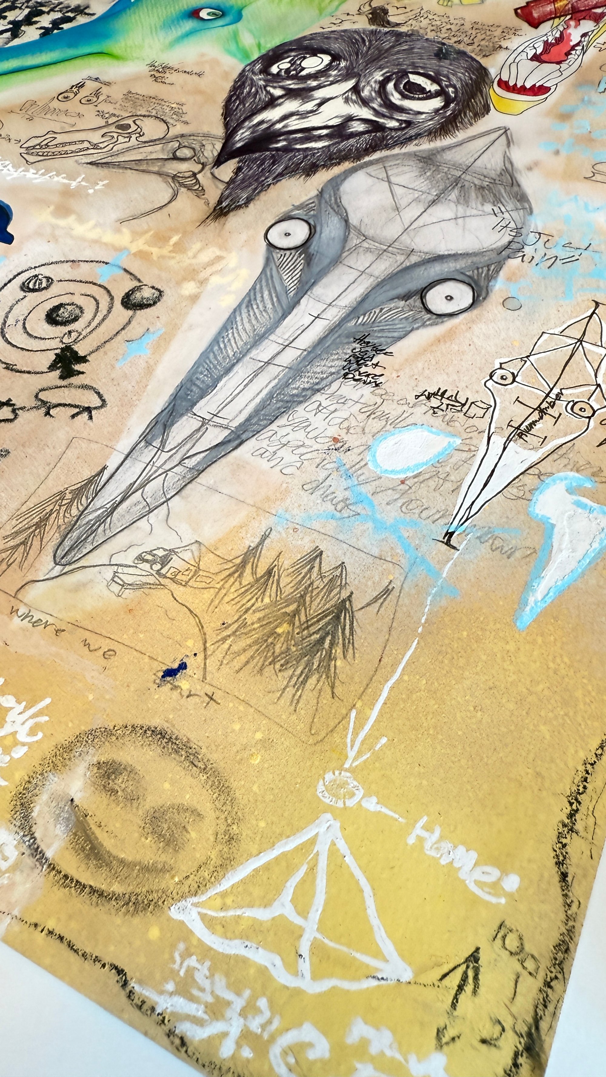 Ink, Pastel, Paint and charcoal on paper 20" x 20"